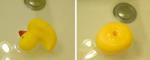 Seen in this way, the capsizing duck is not a novelty demonstration but a small model of a general rule. Stability is not about absolute weight or size, but about relative positions and how forces respond to displacement. The duck makes visible the idea that equilibrium can be stable, unstable, or marginal, and that which one applies depends entirely on the geometry of mass and buoyancy.