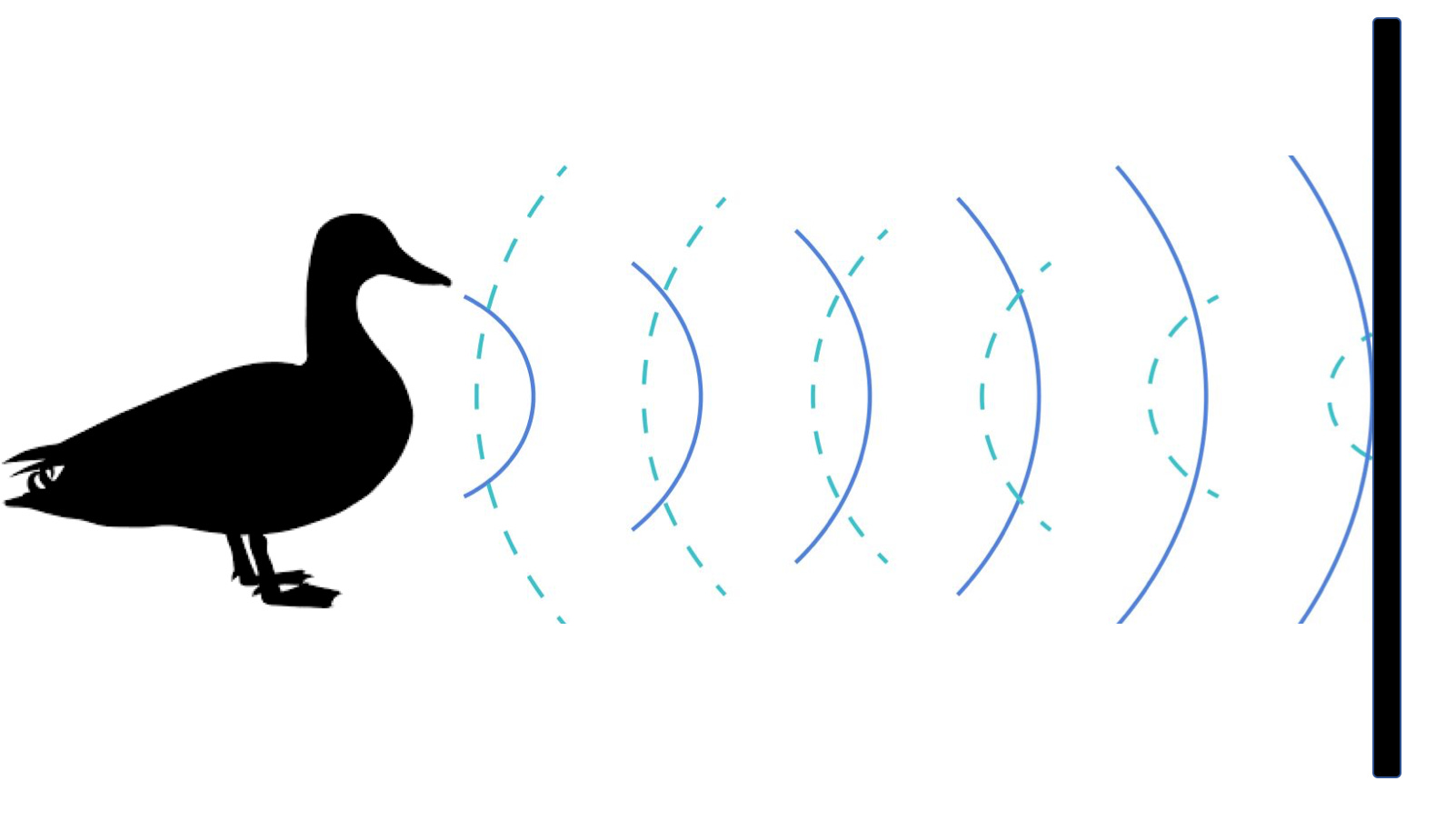 A swimming duck makes the Doppler effect visible in a way that avoids most of the usual abstractions. Imagine a duck moving steadily across a pond while producing a regular disturbance in the water — a small wake, a pulse, or even an audible quack. The duck is both the source of the waves and an object moving through the medium.
